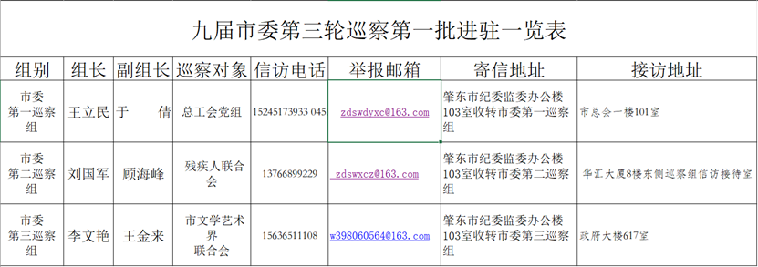 经市委批准,九届市委第三轮巡察工作组建3个巡察组,采取一拖三的方式,对9个群团党组织开展常规巡察。5月23日,市委巡察组全部完成第一轮巡察第一期进驻工作。