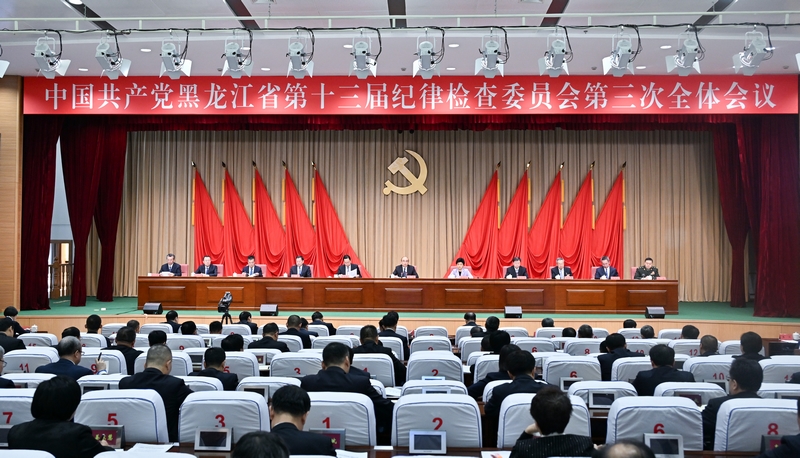 省纪委常委会作《深入学习贯彻习近平总书记关于党的自我革命的重要思想纵深推进龙江纪检监察工作高质量发展》的工作报告,会议审议通过了《中国共产党黑龙江省第十三届纪律检查委员会第三次全体会议决议》。