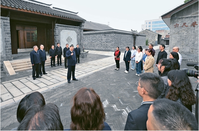 2024年10月17日至18日,中共中央总书记、国家主席、中央军委主席习近平在安徽考察。这是17日下午,习近平在安庆桐城市六尺巷考察时,同当地居民和游客亲切交流。 新华社记者 申宏/摄