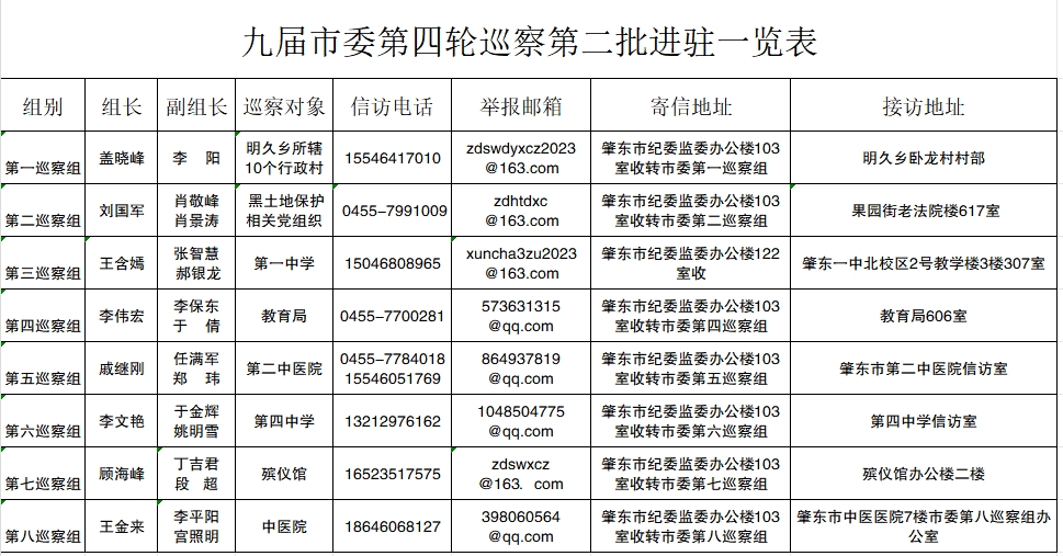 按照市委部署要求,根据《中共肇东市委巡察工作规划(2022-2026年)》,结合省委巡视工作领导小组关于对教育、卫健系统开展常规巡视巡察,对黑土地保护开展专项巡视巡察上下联动安排,经肇东市委批准,九届市委第四轮巡察工作组建8个巡察组,采取一拖N的方式,开展本轮巡察工作。截止11月10日,市委巡察组全部完成第二批进驻工作。