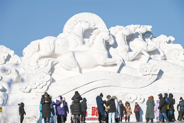 图为近日,游客在第八届哈尔滨松花江冰雪嘉年华园拍照。 新华社记者 张涛 摄
