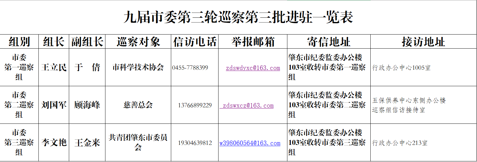 6月15日,市委巡察组全部完成第三轮巡察第三批进驻工作。市委第一至第三巡察组分别进驻市科学技术协会、慈善总会、共青团肇东市委员会3个党组织开展常规巡察。