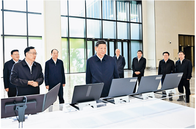 2025年11月7日至8日,中共中央总书记、国家主席、中央军委主席习近平在广东考察。这是8日上午,习近平在广州察看广东科技创新和产业创新融合发展成果展示。新华社记者燕雁/摄