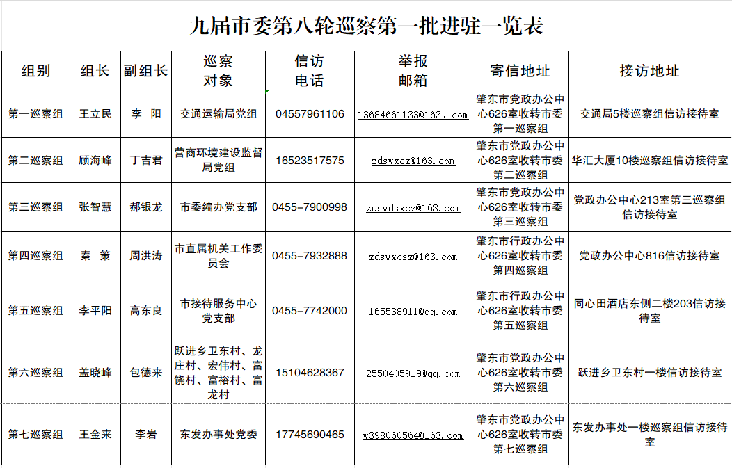 九届市委第八轮巡察第一批进驻一览表